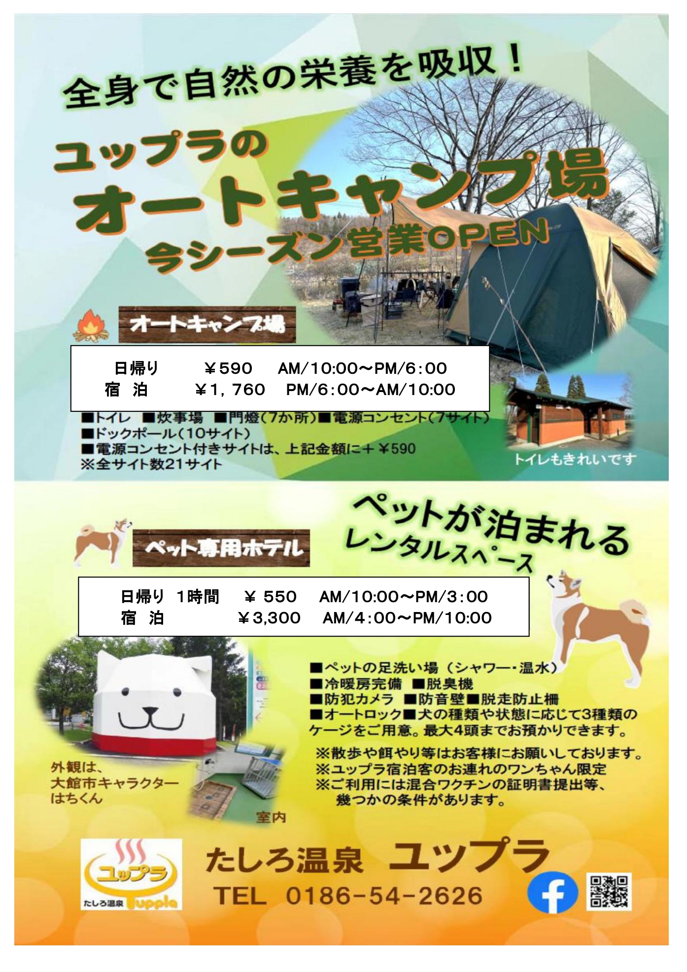 ≪オートキャンプ場≫ 営業開始のお知らせ 令和8年4月25日(土)より営業開始致します。 皆様のご利用をお待ちしております。